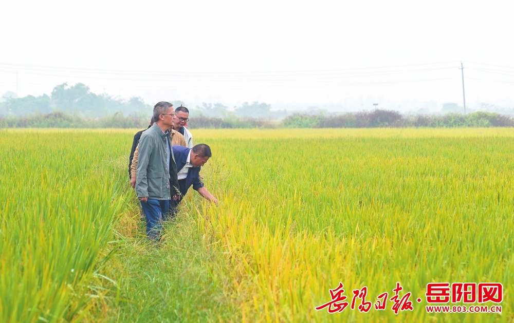 岳陽縣筻口鎮潼溪村,由多單位專家組成的驗收小組深入試驗田,以專業的眼光檢視稻谷成果。岳陽日報全媒體記者彭正陽攝