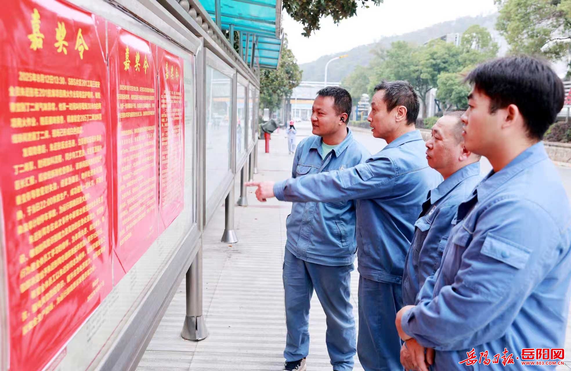 岳陽日報11月7日訊(彭展)11月7日,湖南石化橡膠部廠區查改隱患嘉獎令張榜宣傳欄前,幾名承包商人員駐足瀏覽。該部10月份張榜的3個嘉獎令,分別對3個片區6名及時查改隱患的員工予以5000元嘉獎,號召全體員工以受表彰員工為榜樣,時刻緊繃安全生產弦,強化風險防控意識,提升應急處置能力,共同筑牢安全生產防線。