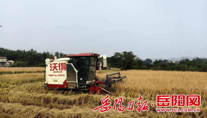 △供銷社農用收割機正收割晚稻。徐蕾 攝