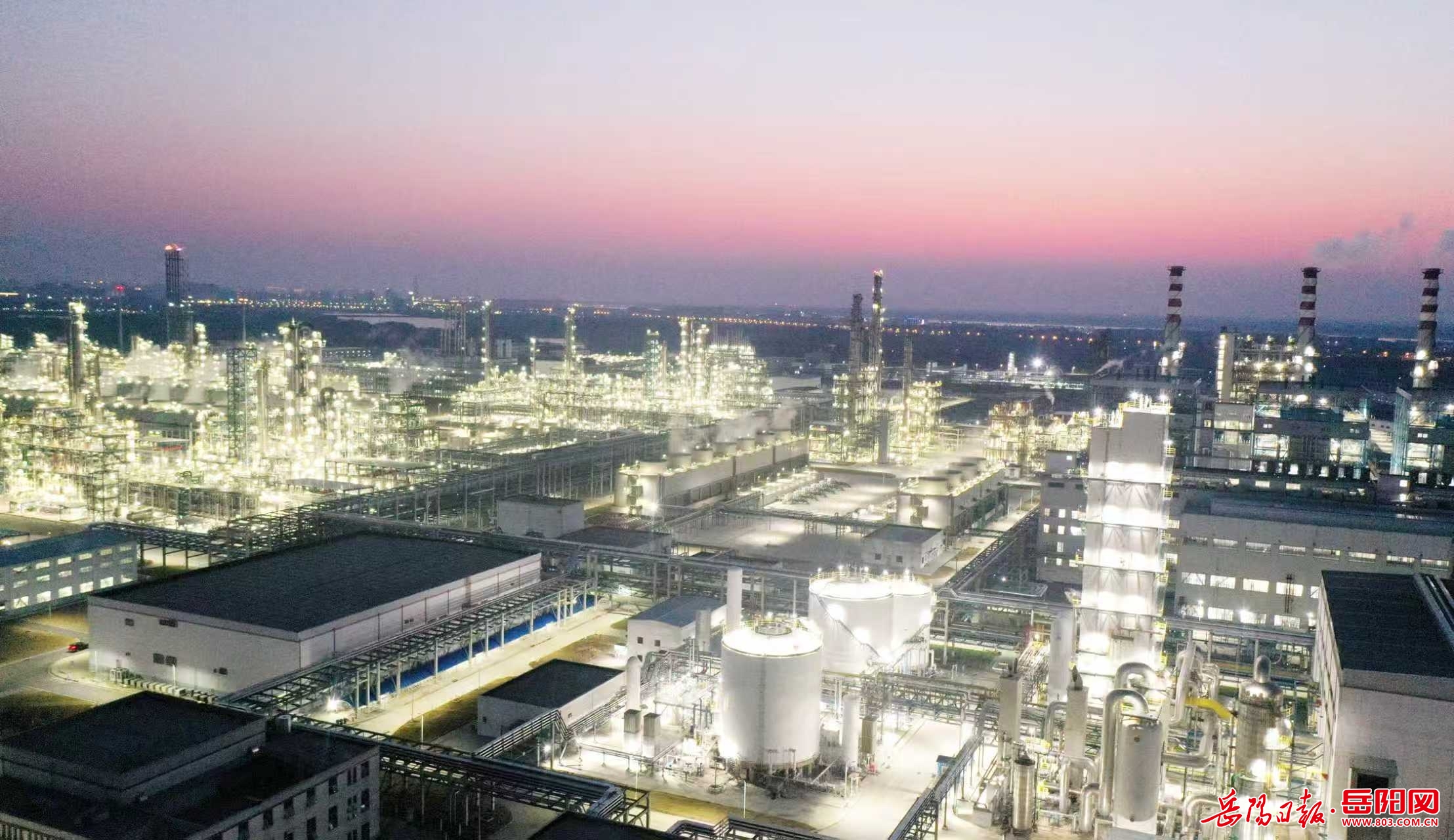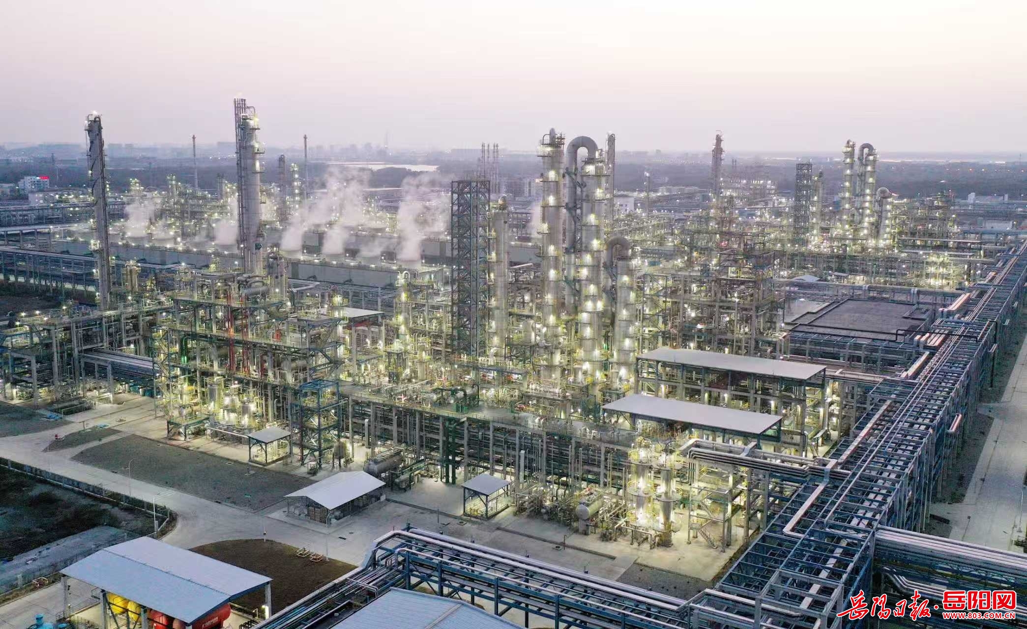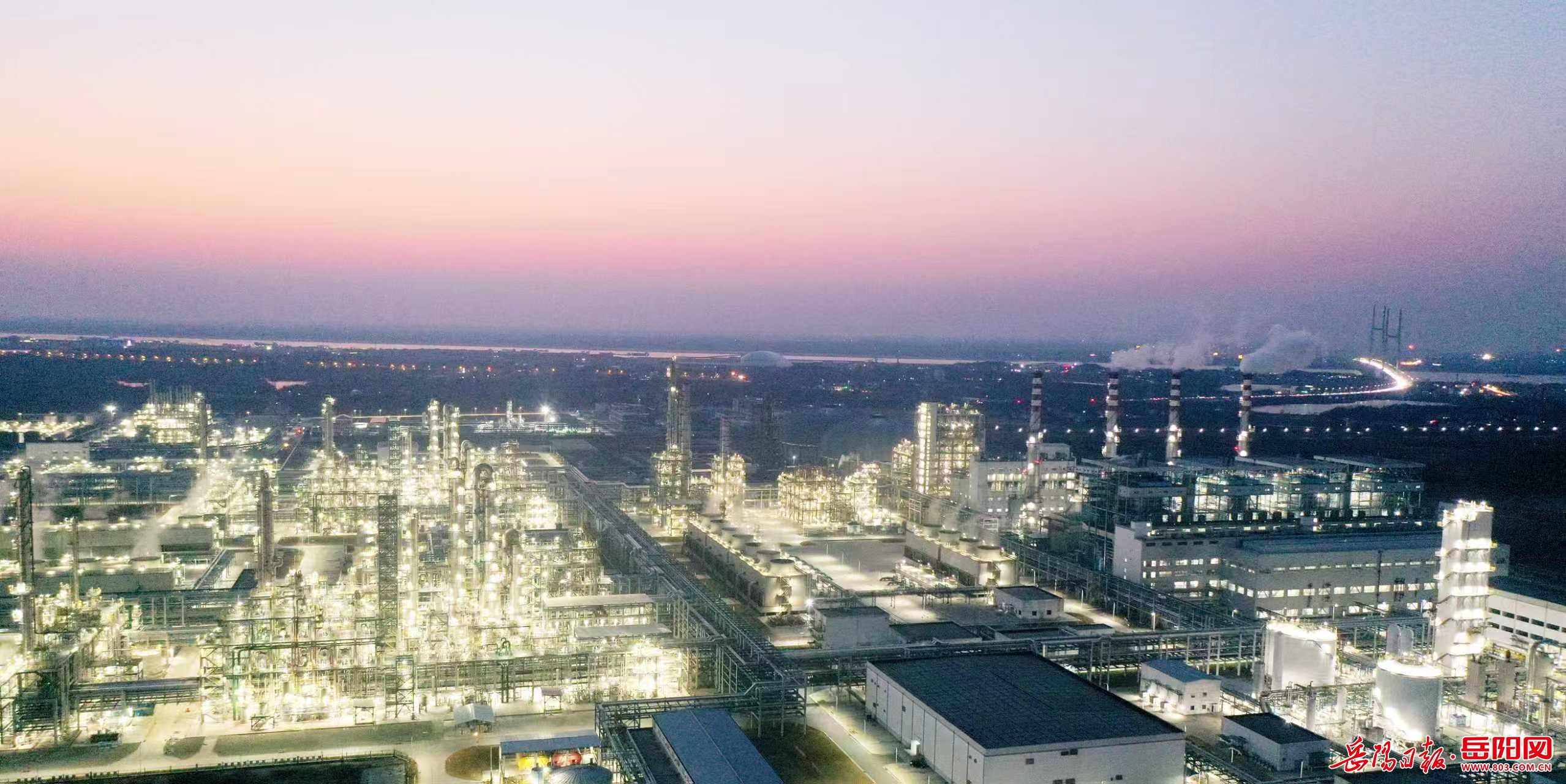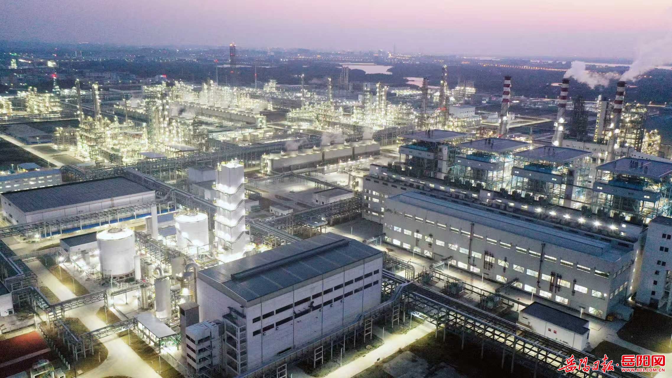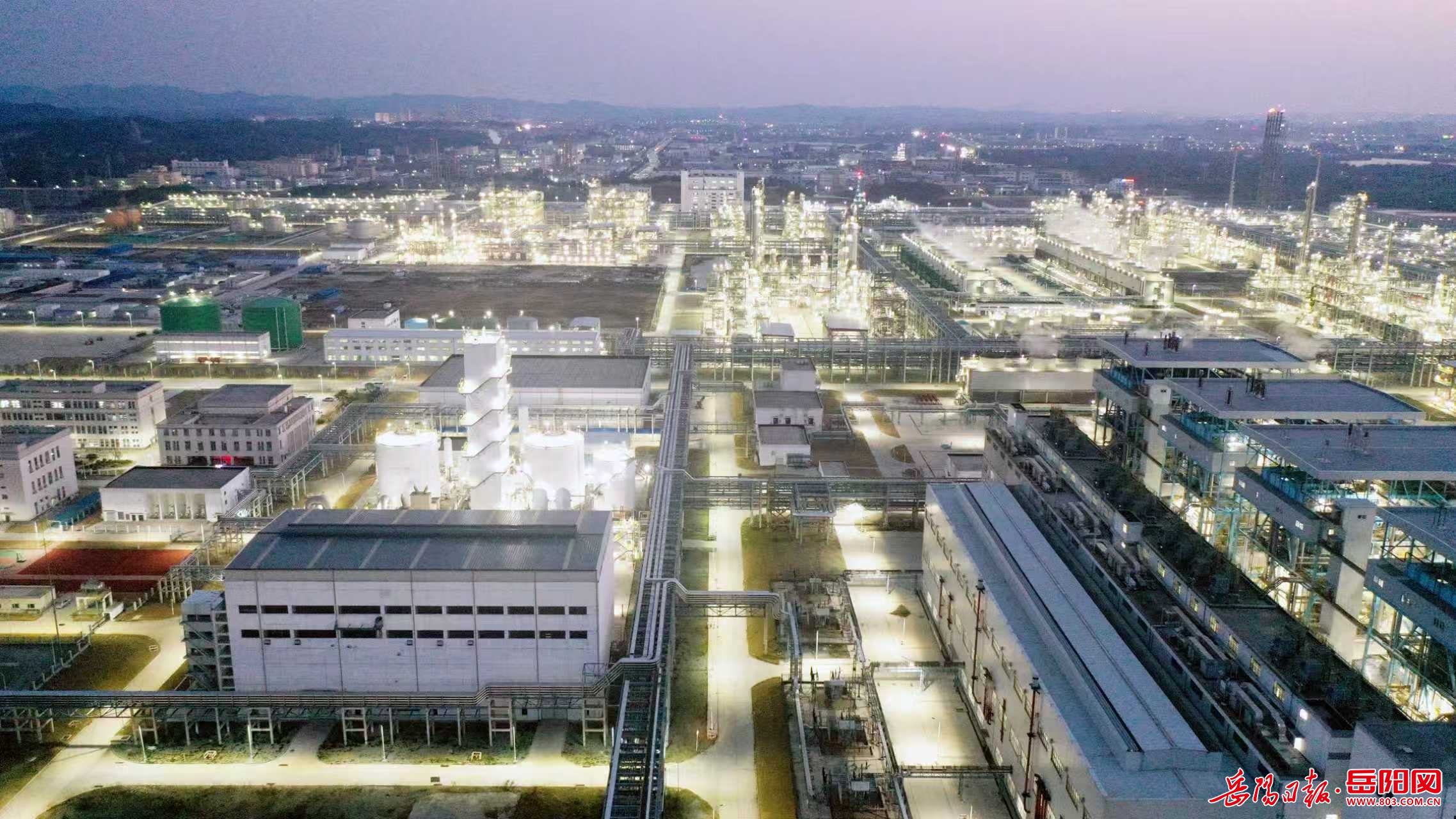 岳陽日報2月23日訊(彭展 何文竣) 2月21日(正月初五)傍晚,湖南石化年產60萬噸己內酰胺產業鏈搬遷與升級轉型發展項目新區照明燈開啟,宛若“星辰大海”風景線,蔚為壯觀。