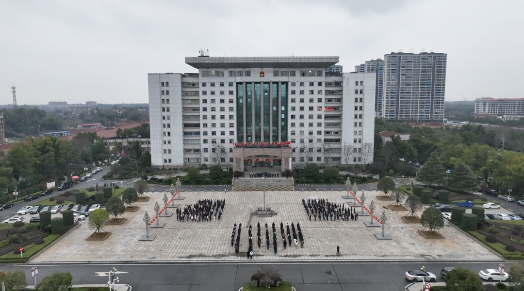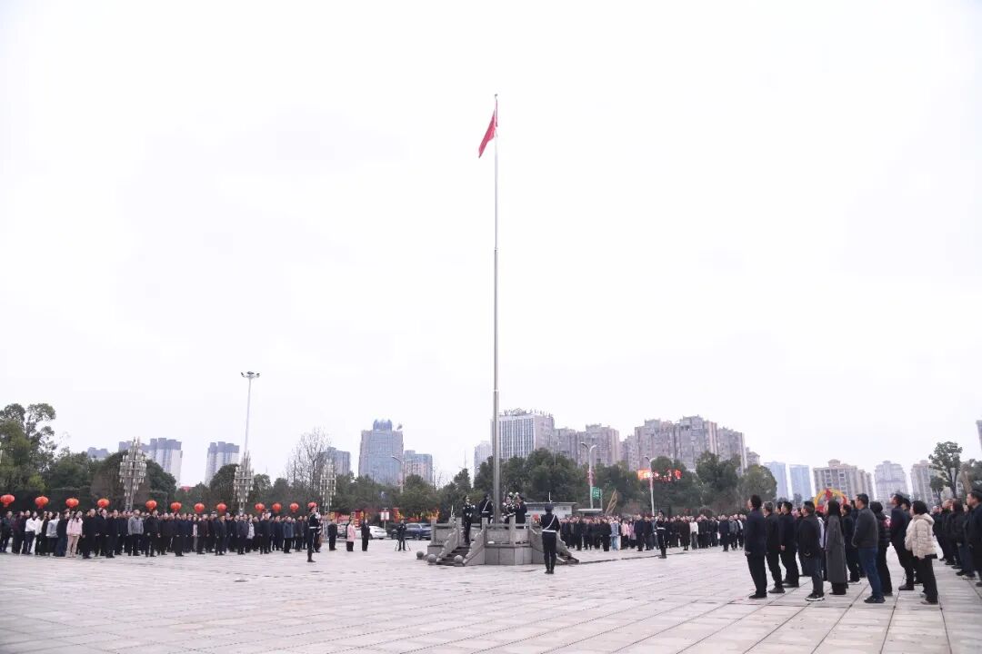上午8時8分,升國旗儀式正式開始。國旗護衛隊邁著鏗鏘有力的步伐,護衛國旗入場。伴隨著激昂的國歌聲,全體人員莊嚴肅立,行注目禮。在大家的深情注視中,鮮艷的五星紅旗緩緩升起,迎風飄揚在機關大院上空,寓意著湘陰在新的一年里乘勢而上,再創輝煌。