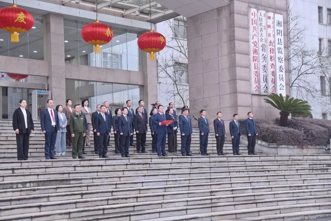 岳陽日報2月24日訊(通訊員 張千帆 周鳳姣)2月24日,春節后上班第一天,湘陰縣在縣四大家機關大院舉行莊嚴的升國旗儀式,動員全縣上下扛牢“走在前、趟新路”的光榮使命,凝心聚力、砥礪奮進,共同開啟湘陰跨越發展的嶄新征程。湘陰縣委書記劉世奇出席并講話,縣委副書記、縣長張永久主持,縣人大常委會主任鄧淼,縣政協主席楊革新及全體在家縣級領導參加。